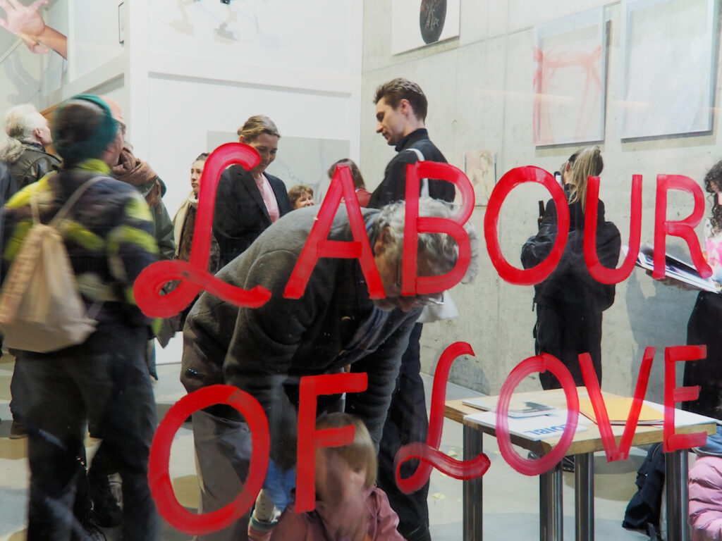 Curated by Bettina Semmer, the exhibition symbolically opens on Equal Pay Day and addresses the tension between artistic production and everyday care work.
